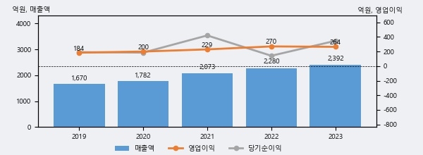 최근 3년간의 실적을 살펴보면 안정적 성장세를 보이고 있다. 최근 3년간 매출로 볼 때 매년 꾸준히 증가하고 있다. 다만 최근에 그 증가폭이 다소 감소하고 있다.
