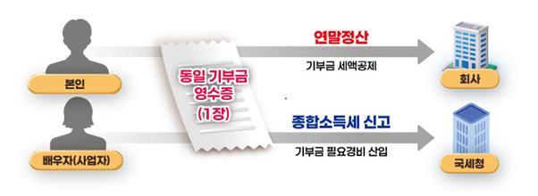 종합소득세 신고 대상인 B씨 배우자는 이 기부금 100만원을 자신 개인사업장의 필요경비로 처리했다.