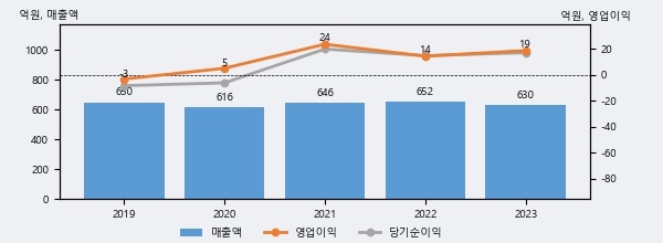 엔피케이는 2023년 매출액 630억원과 영업이익 19억원을 기록했다. 전년대비 매출은 -3.4% 하락했고, 영업이익은 29.9% 상승했다. 이 회사의 매출액 증감률과 영업이익 증감률은 각각 코스닥 하위 44%, 상위 26%에 해당된다.