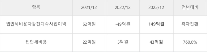 신세계푸드의 지난 3년 동안 법인세 납부액 추이를 보면 2022년에는 감소했으나, 작년에는 43억원으로 크게 증가했다.