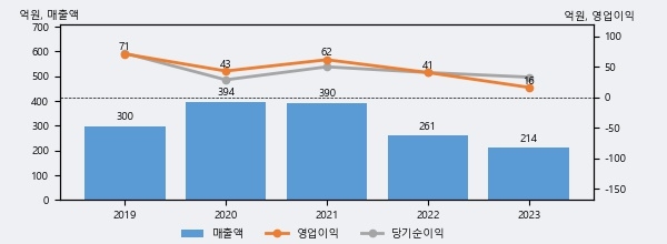 최근 3년간의 실적을 살펴보면, 매출액은 3년 연속 하락하고 있으나 그 하락폭은 줄어들고 있음을 알 수 있다.
