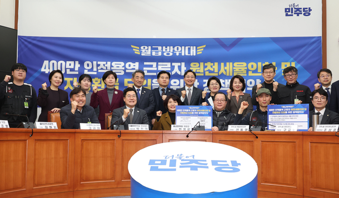 이날 정책협약식에는 박찬대 원내대표를 포함해 민주당 월급방위대 위원장 한정애 의원, 간사인 박홍배 의원, 임광현 의원 등이 참석했다.