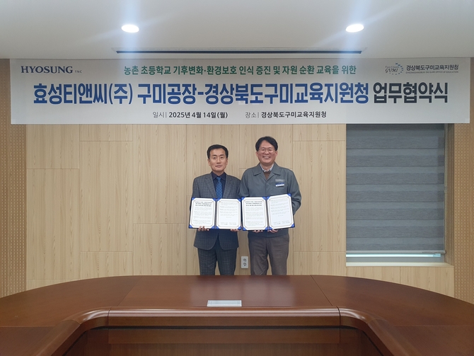 효성티앤씨측은 “이번 협약은 회사가 활발하게 추진해온 ESG 경영 활동의 일환”이라며 “효성티앤씨 구미사업장 인근의 농촌 학생들에게 기후변화와 자원순환에 대한 인식을 높이고 도농 간 교육‧문화 격차 해소에 기여하기 위해 추진됐다. 양측은 향후 구미 지역 농촌 초등학생 대상 자원순환 교육 프로그램 공동 추진 및 교육 콘텐츠 지원 등에 협력할 방침”이라고 전했다.