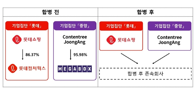 롯데컬처웍스와 메가박스중앙은 각각 영화 투자배급업(롯데엔터테인먼트·플러스엠)과 영화관(롯데시네마·메가박스) 사업을 영위하고 있다.
