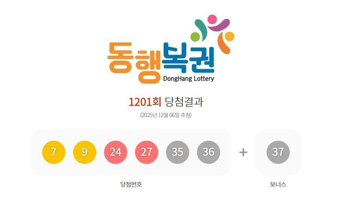 (조세금융신문=박청하 기자) 제1201회 로또복권 추첨에서 '7, 9, 24, 27, 35, 36'이 1등 당첨번호로 뽑혔다. 2등 보너스 번호는 '37'이다.