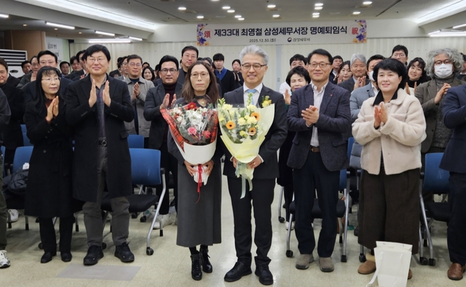최 서장은 퇴임사에서 “36년의 국세공무원 생활을 마감하고 정든 국세청을 떠나려 하니 감회가 새롭다”며 “삼성세무서에서 마지막 근무를 명예롭게 마칠 수 있어 기쁘다”고 말했다. 또한 내조해 준 최은영 여사, 자녀 수빈·은빈에게도 감사와 미안함을 전했다.