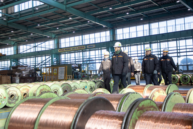 이날 김 사장은 미국·영국·싱가포르 등 글로벌 시장으로 수출되는 초고압 케이블 생산 라인을 살피는 한편, 제조 현장에 도입된 AI 기반 업무 자동화 설비 운영 현황도 확인했다. 공정 효율과 품질 안정성을 동시에 끌어올리기 위한 첨단 기술 적용이 본격화되고 있다는 점을 직접 점검한 것이다.