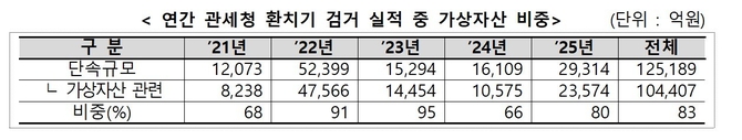 관세청은 무역과 외환을 관리하는 기관으로서 이러한 흐름의 최전선에 서 있다. 최근 5년간 관세청이 적발한 가상자산 이용 불법 외환거래 규모만 해도 13조 7,368억 원에 이른다. 이는 단순한 숫자가 아니라, 환치기와 재산 국외도피 등 국민의 삶을 위협하는 초국가범죄의 실체다.