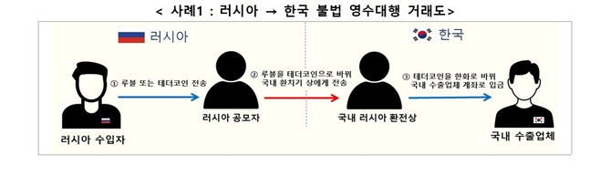 실제 사례를 보면 수법은 점점 더 치밀해지고 있다. 러시아 제재로 정상적인 은행 송금이 어려워지자, 일부 수출업체들은 수출 대금을 스테이블코인으로 수령했다. 러시아에서 현금을 받은 환전상이 테더를 구매해 한국으로 전송하고, 이를 다시 현금화해 국내 업체 계좌로 보내는 방식이었다. 이렇게 오간 가상자산 규모는 571억 원에 달했다.