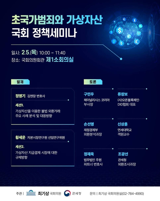 최기상 의원은 가상자산을 외국환에 준해 관리하는 체계를 도입하기 위해 외국환거래법 개정안을 대표 발의한 바 있다. 최 의원은 “가상자산이 초국가범죄의 새로운 통로로 진화하고 있다는 점은 더 이상 부인하기 어려운 현실”이라며, "이번 논의가 건전한 거래 질서를 만드는 출발점이 되기를 바란다"고 말했다.
