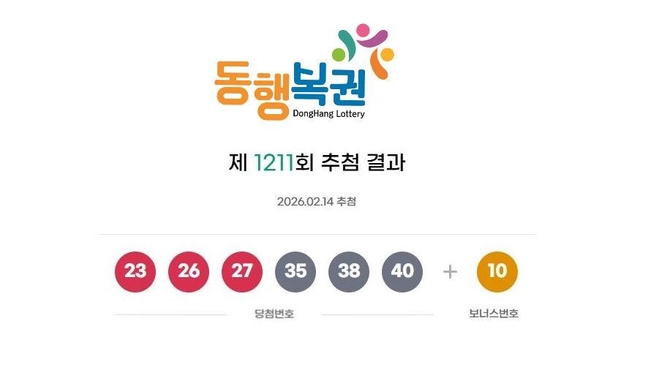 (조세금융신문=박청하 기자) 제1211회 로또복권 추첨에서 '23, 26, 27, 35, 38, 40'이 1등 당첨번호로 뽑혔다. 2등 보너스 번호는 '10'이다.