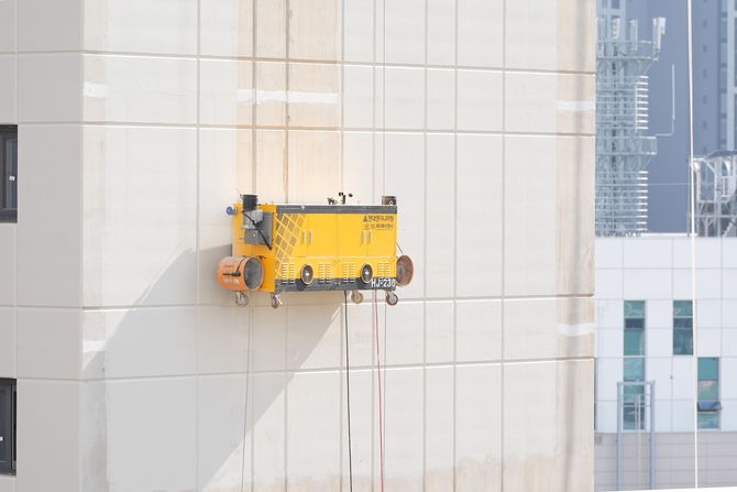 이번 기술의 핵심은 무인·원격제어 방식으로 기존 달비계 기반 외벽 도장 작업을 대체한 점이다. 작업자는 지상이나 옥상에서 장비를 조작할 수 있어 고소 작업에 따른 안전사고 위험을 줄일 수 있다.