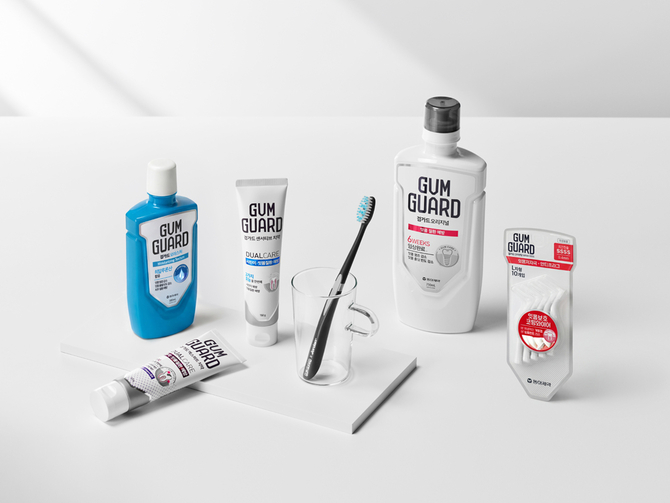 ‘검가드 엑스퍼트 치약’은 1450ppm 고함량 불소를 함유했으며 병풀을 포함한 12종 식물 유래 성분을 배합해 염증 반응 완화를 돕는 것이 특징이다. 양치질 외의 보조 관리도 중요하다.