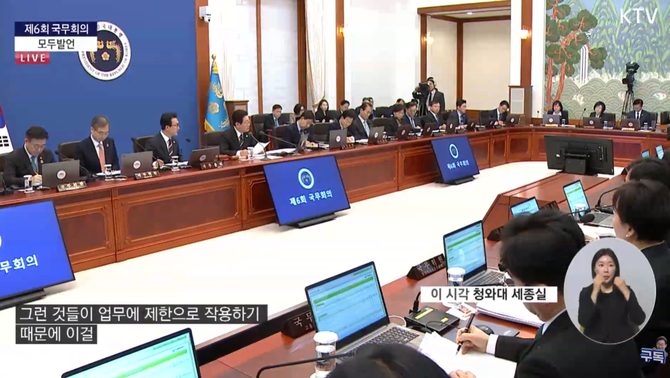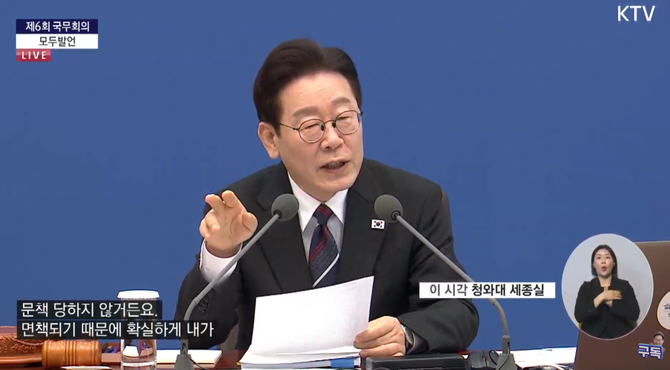 이 대통령은 이날 오전 청와대에서 열린 제6회 국무회의에서 “적극적으로 일하는 공직자들이 존중받는 나라를 만들려고 노력하겠지만 공직자들은 문책에 대한 두려움 같은 것들이 업무의 제한으로 작용하기 때문에 이걸 좀 덜어줘야 된다”고 말했다.