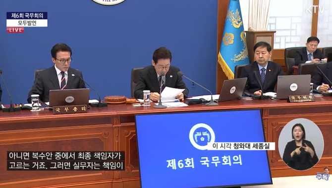 “장관이 지시해서 하는 건 문제가 없잖아요. 대신 장관이 책임지는 거죠. 또, 예를 들면 어떤 복수의 안이 있을 수 있죠. A안, B안, C안, 그걸 복수로 써오게 한 다음에 선택하세요. 선택하면 장관 책임 아닙니까? 단일안을 최종안을 만들어 오라고 하면 스트레스 받으니까 지시 사항을 써주거나 아니면 복수안 중에서 최종 책임자가 고르는 거죠. 그러면 실무자는 책임이 없으니까 좀 마음이 편할 겁니다.”이 대통령은 그러면서 장관, 처장, 청장 등 정무직 공무원들이 수요자 중심의 마인드로 공직자들에 대해 적극적이고 책임 있는 행정을 유도할 것 또한 당부했다.