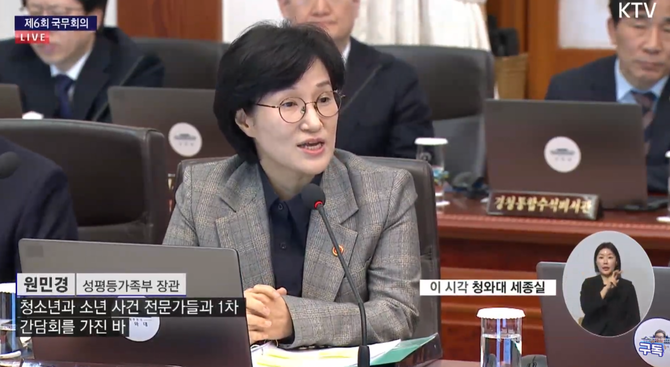 이에 대해 원민경 성평등가족부장관은 “올해 상반기에 국민 공론화를 통해 심도 깊은 논의의 장이 열려야 되지 않을까 하는 생각이 든다”며 법무부가 제시한 소년 범죄 종합대책 추진 과제 12개 중 예방과 관련된 건 단 한 건에 불과하다고 말했다.