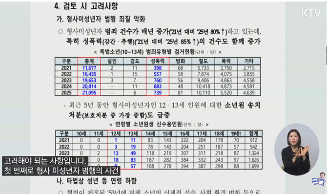 2021년 대비 2025년 형사 미성년자 범행 건수는 1만1677건에서 2만1000여 건으로 약 80% 증가했고, 성폭력 범행의 경우 398건에서 739건으로 85% 증가했다.