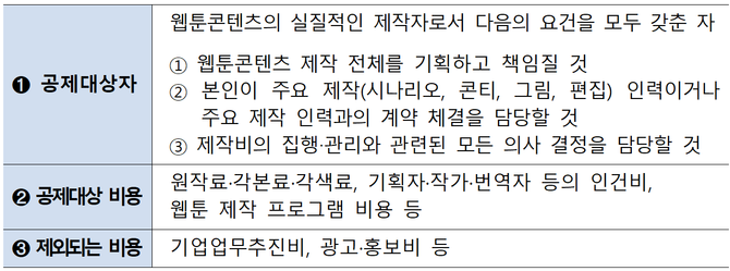 공제대상이 되려면, 웹툰콘텐츠 제작 전체를 기획하고 책임지며 본인이 직접 시나리오를 짜고 그림 등을 그리거나 주요 제작인력과 맺은 계약, 그리고 제작비 관련 모든 의사 결정을 담당해야 한다.