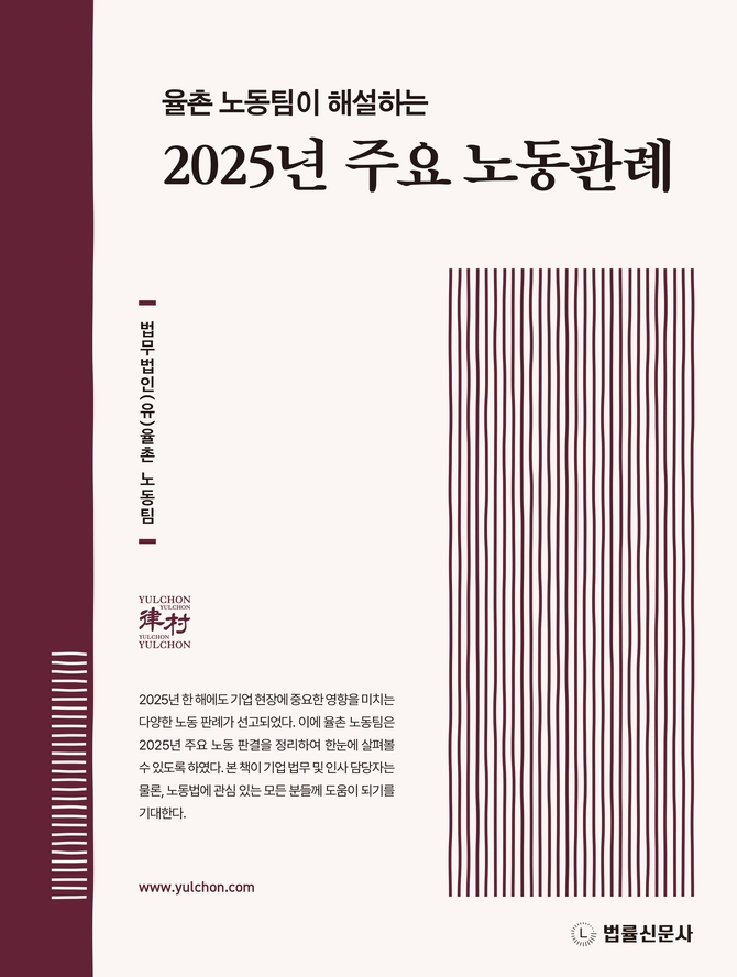 (조세금융신문=고승주 기자) 법무법인 율촌 노동팀이 ’2025년 주요 노동판례’를 발간했다고 19일 밝혔다.