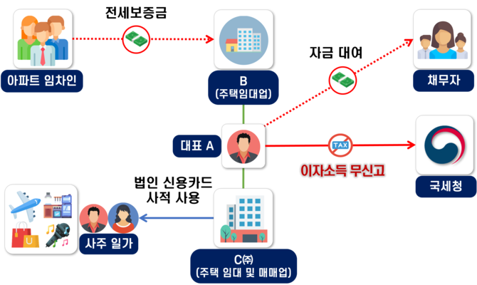 A는 아파트 임차인으로부터 받은 전세보증금을 타인에게 빌려줬으나 관련 이자소득 수억원을 신고하지 않았다.