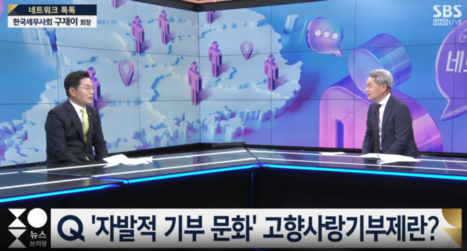 구재이 한국세무사회 회장은 지난달 27일 SBS ‘주영진의 뉴스브리핑’ 생방송에 출연해 세무사회가 고향사랑기부제 활성화의 주역으로 활약한 성과를 소개했다.
