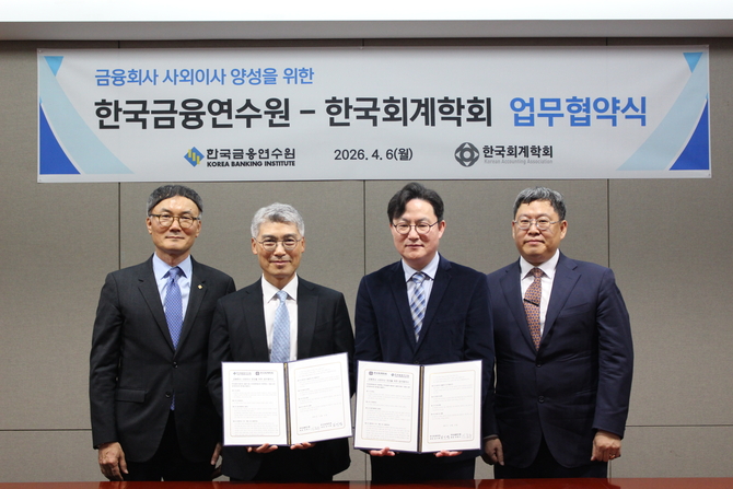 7일 한국금융연수원과 한국회계학회는 지난 6일 ‘금융회사 사외이사 양성’을 위한 업무협약을 체결했다고 밝혔다. 최근 금융회사 지배구조의 투명성과 내부통제 강화를 요구하는 목소리가 커지면서, 이사회 핵심 축인 회계·재무 분야 역량을 보완하기 위한 조치다.