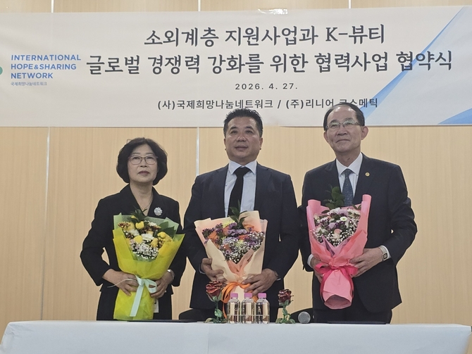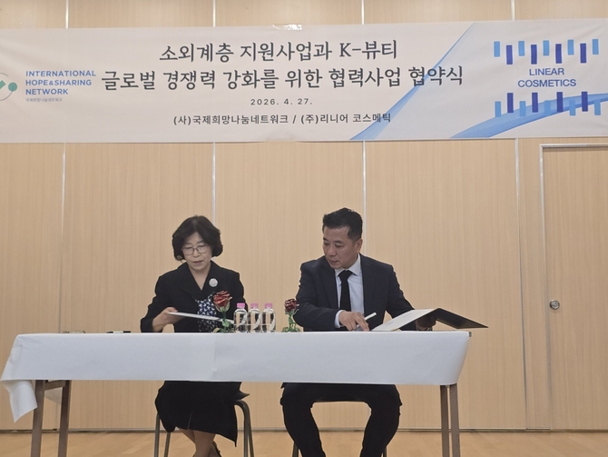 행사는 양 기관의 비전과 주요 활동을 담은 홍보 영상 상영으로 시작됐으며, 김나현 아나운서의 사회로 내빈 소개가 이어졌다. 이후 김현조 리니어코스메틱 대표와 이미자 국제희망나눔네트워크 이사장이 협약서에 서명하며 공식적인 협력 관계를 구축했다.