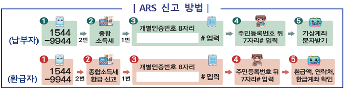 소득세 환급대상자가 ARS로 신고하면 연락처와 환급계좌가 자동으로 제공된다.