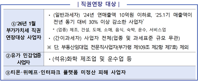 대상은 유가 민감업종, 수출 중소(중견)기업 사업자, 중동전쟁으로 어려움을 겪는 사업자 등이다. 티몬, 위메프 사태 피해자들은 홈택스 ‘절세혜택’ 항목에서는 피해대금을 비용으로 처리할 수 있는 방법을 확인할 수 있다. 종합소득세 납부 연장 대상은 개인지방소득세도 납부 연장 혜택을 받는다.
