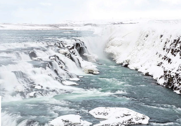 빙하가 녹은 물이 합쳐져 형성된 흐비타 강이, 높이 32m의 절벽을 만나 폭포가 된 굴포스는 흔히 알고 있는 높은 지형에서 떨어져 내리는 폭포가 아니라, 넓게 형성된 폭포다. 포스는 폭포를 뜻하는 데, 화산재로 뒤덮인 대지에서 모인 물이 떨어지는 굴포스 주위로 산책로가 조성되어 있어, 폭포 주위를 거닐 수 있다. 산책로를 걷다 보면 폭포에서 낙하한 물이 기포가 되어 비처럼 내리는데, 웅장한 자연의 위력을 실감할 수 있다.