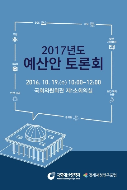 국회예산정책처는 19일 오전 10시 국회의원회관 제1소회의실에서 ‘2017년도 예산안 토론회’를 개최한다.