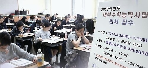 2017학년도 수능시험은 17일 오전 8시40분부터 오후 5시40분까지 전국 1천183개 시험장에서 60만5천987명이 응시해 치러진다.