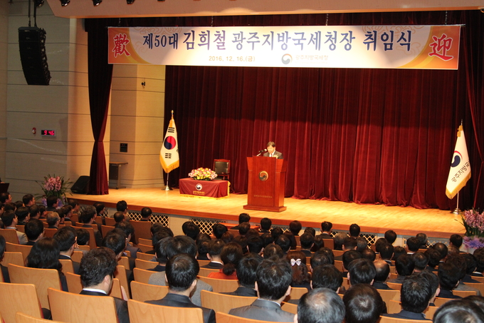 16일 광주지방국세청 강당에서 진행한 취임식 자리에서 김희철 신임 청장은 “광주지방국세청은 저의 첫 근무지로 인연이 매우 깊은 곳이다. 광주청 청장으로 부임해 매우 영광스럽지만 앞으로의 막중한 임무를 생각하면 무거운 책임감과 사명감이 앞선다”고 소감을 밝혔다.