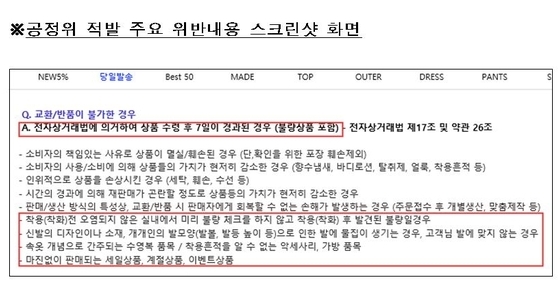 법률에 정해진 교환‧환불 등 청약철회 기간을 제멋대로 축소 표시해 소비자들이 청약철회 기간을 오인해 교환‧환불을 포기하도록 한 행위도 조사 결과 드러났다.