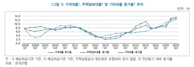 이에 보고서는 경제규모 대비 규모가 크고 증가속도가 빠른 우리나라 가계부채의 원인을 주택담보대출 뿐만 아니라 기타 가계대출도 동시에 증가했기 때문인 것으로 판단했다.