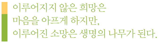 희망을 꿈꾸다 보면 마음의 상처를 입기도 하지만, 그 희망이 이뤄지면 자신은 물론 이웃과 사회를 살릴 수 있다. ‘아픈 만큼 성숙한다’는 금언을 되새겨야 할 때다.