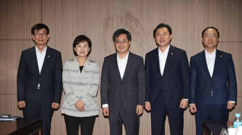 이날 경제현안간담회에는 김현미 국토교통부 장관, 김영춘 해양수산부 장관, 김상조 공정거래위원장, 홍남기 국무조정실장 등도 참석했다.