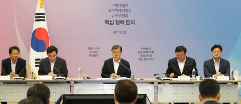 (조세금융신문=고승주 기자) 기재부·공정위·금융위가 25일 오후 세종컨벤션센터에서 대통령과 3개 부처 장차관, 당청 인사 등이 참석한 가운데 핵심정책토의를 열고, 올 하반기에 중점 추진할 핵심정책 2개를 간략히 보고한 후, 핵심정책 관련 쟁점 위주로 토의를 진행했다.