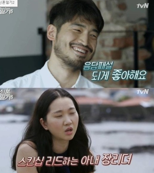 5일 첫 방송된 tvN '신혼일기2'에서 이 부부가 신혼의 알콩달콩함을 전해 시청자들을 집중케 했으며 특히 장윤주는 "옷이 다 젖었다"는 정승민에게 "그냥 벗고와라"며 거침없는 19금 애정표현을 해 이목을 끌었다.
