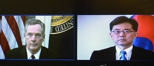 지난달 22일 한미FTA 공동위원회가 열린 이후 양국 한미FTA 상대인 두 사람이 직접 만난 것은 이번이 처음이다. 지난달 서울에서 열린 공동위에서는 두 사람이 영상회의를 통해 대화했다.