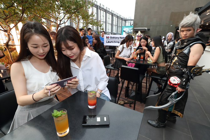 KT는 전날 노보텔 앰배서더 서울 동대문에서 갤노트9 예약가입자 100명을 초청해 사전개통 전야행사를 진행했다.