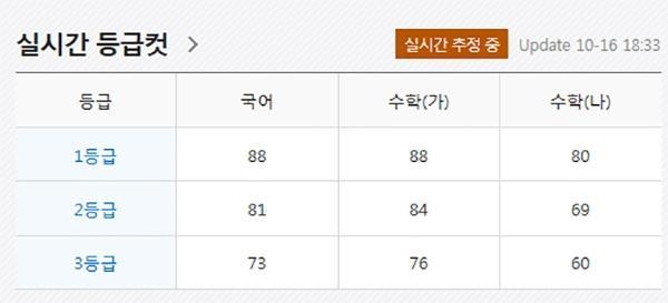 이후 수험생들은 등급컷을 확인하며 다가올 수능의 난이도를 점쳐보기도 했다.