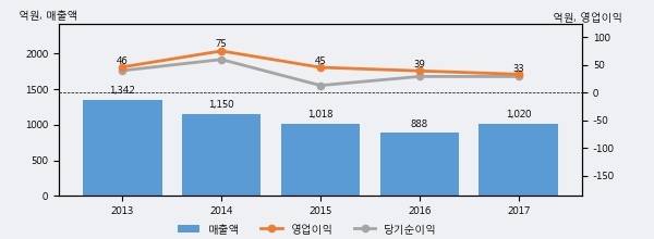 수산중공업의 2017년 매출액은 전년대비 14.8% 늘어난 1020억원이고, 영업이익은 전년대비 -15.6% 줄어든 33억원을 기록했다. 이 회사의 매출액 증감률과 영업이익 증감률은 각각 코스피 상위 26%, 하위 38%에 해당된다.