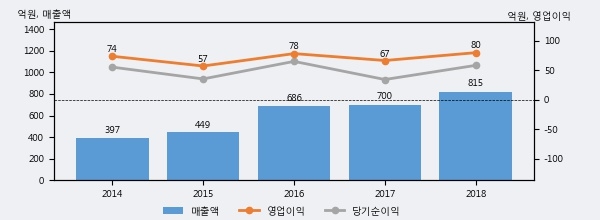 최근 3년간의 실적을 살펴보면 안정적 성장세를 보이고 있다. 최근 3년간 매출로 볼 때 매년 꾸준히 증가하고 있고 그 증가폭도 확대되고 있다.