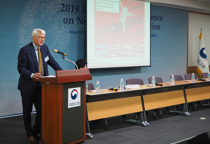 기조 발표는 미국 스탠퍼드대학교의 스콧 세이건(Scott Sagan) 교수가 맡아 미국인들이 북한 핵문제에 대해 가진 생각을 주제로 발제했다. 세이건 교수는 설문조사를 통해 미국 대중들이 북한을 어떻게 생각하는지, 북한을 위협으로 느끼는지, 제재나 협상이 통하지 않으면 군사력으로 북한의 핵무장을 해제하는 것을 지지하는지, 북한과의 전쟁을 용인하는 미국인은 어떤 사람인지 조사했다.