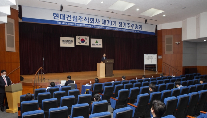 아울러 현대건설은 이날 사외이사 신규선임과 이사 보수한도 상향을 비롯한 주요 안건을 모두 통과시켰다. 올해 주총 안건은 ▲제70기 재무제표 승인 ▲사외이사 김재준·홍대식 선임 ▲감사위원회 위원 김재준·홍대식 선임 ▲이사보수한도 승인이다.