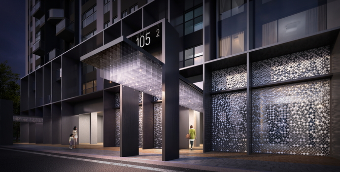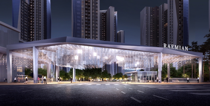 단지 입구는 상가와 문주가 연계된 디자인의 초대형 프레임으로 설계해 단지에 들어서는 순간부터 압도적인 장엄함과 화려함을 느끼도록 했다. 특히 문주는 샹들리에를 모티브로 화려한 에메랄드 디자인을 적용, 마치 거대한 샹들리에가 입주민을 맞이하는 형태로 설계하여 랜드마크 단지의 상징성을 높인다는 계획이다.