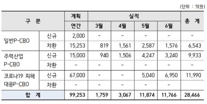 신보는 이번 6월 발행을 통해 코로나19로 직접적인 피해를 입은 씨제이푸드빌(외식), 장금상선(해운), 서연이화(자동차부품), 한세실업(의료제조) 등 업종과 소상공인 등에 대한 원리금상환 유예에 적극 참여한 여전사에 7000억원을 우선 지원했다.