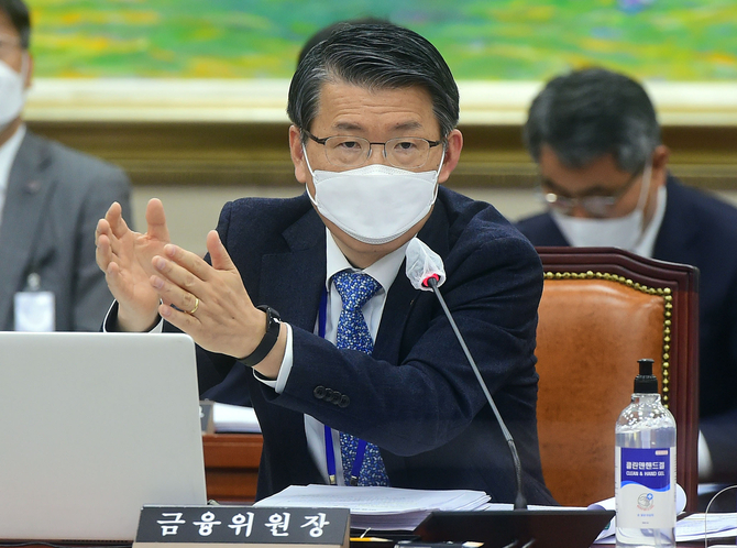 24일 은 위원장은 국회에서 열린 정무위원회 전체회의에 참석해 윤창현 국민의 힘 의원이 금감원 재지정 사안에 대해 묻자 “기획재정부에서 의견요청이 온 것은 없다. 독립성 차원에서 안 했으면 한다”고 답했다.