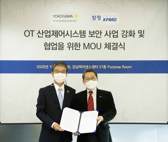 (조세금융신문=고승주 기자) 삼정KPMG가 15일 역삼동 삼정KPMG 본사에서 한국요꼬가와전기와 산업운영기술(OT) 보안 사업 강화 및 산업제어시스템(ICS) 신기술 연구 협력을 위한 업무협약을 체결했다.